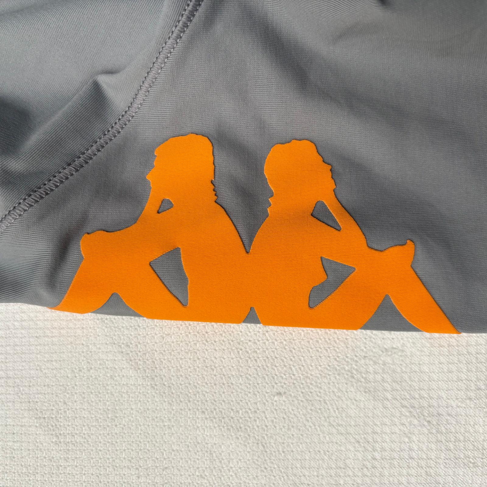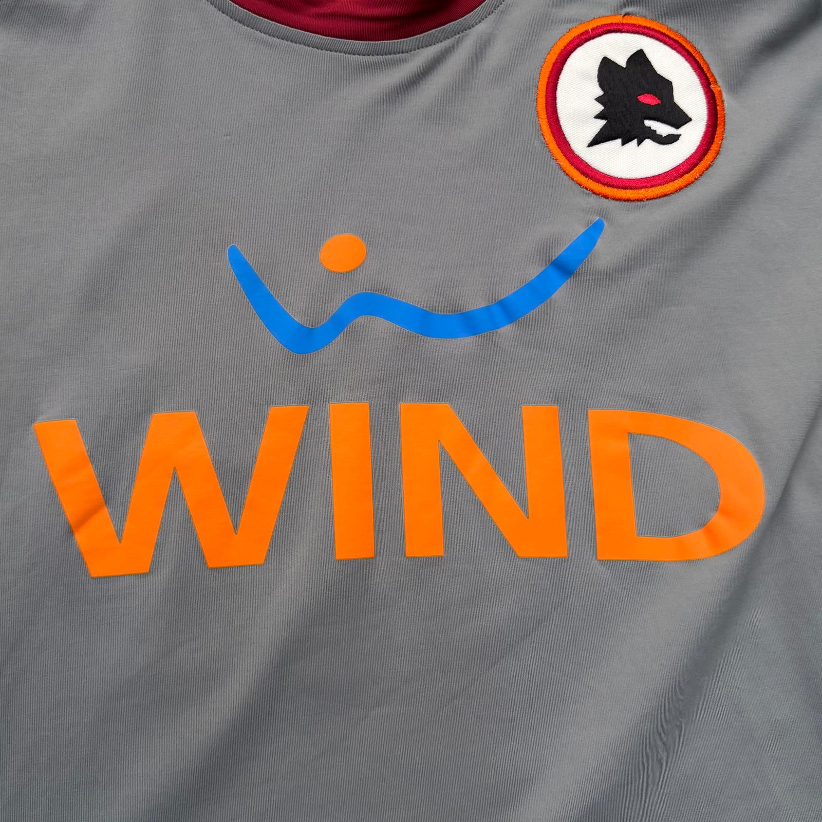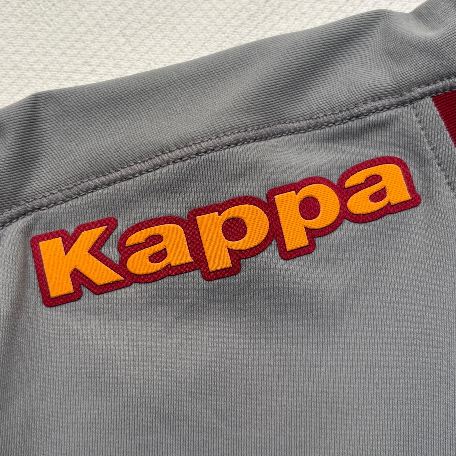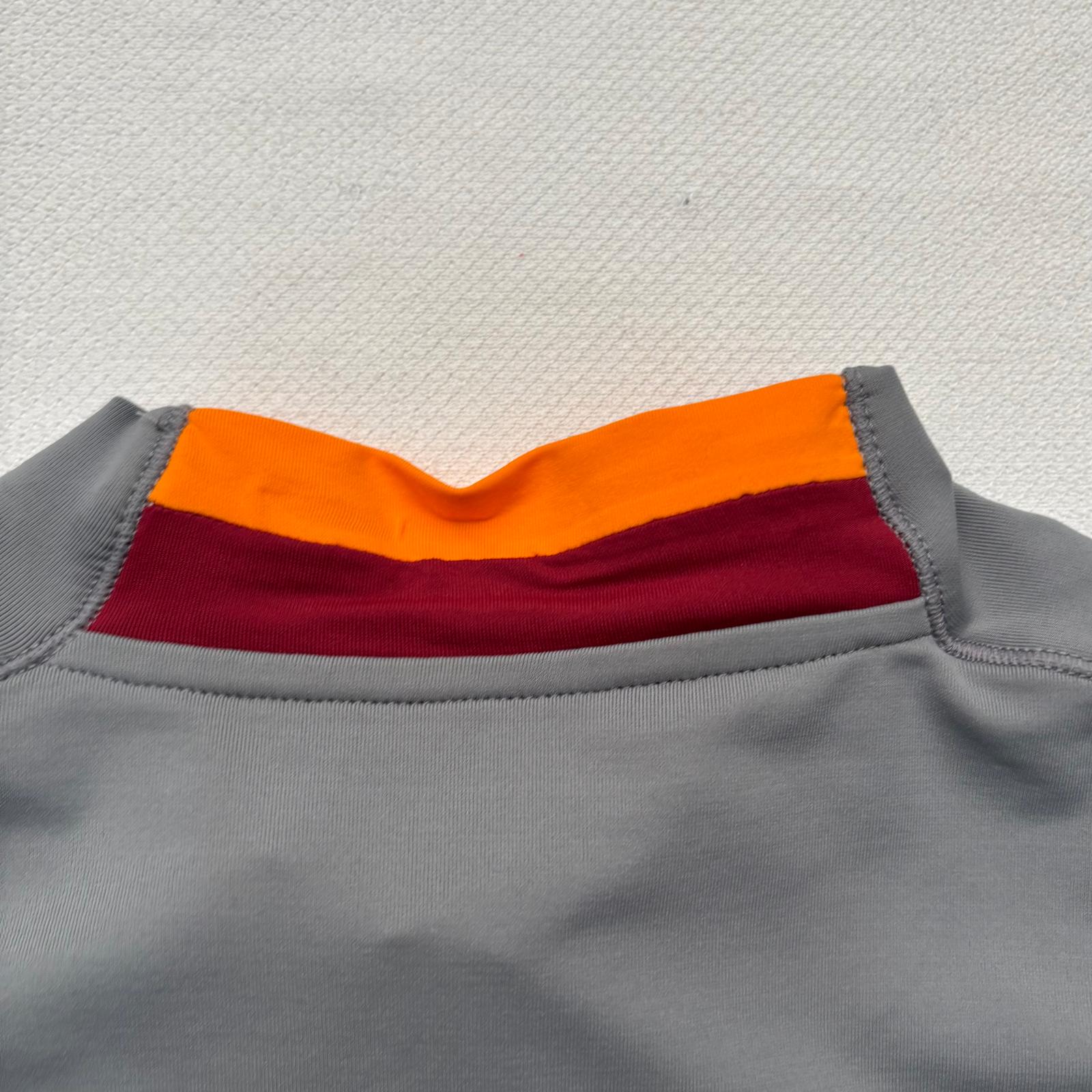 La camiseta de portero de la AS Roma en la temporada 2012-13, fabricada por Kappa, presenta un diseño en gris con detalles en naranja y burdeos, reflejando los colores tradicionales del club. Fue utilizada en la Serie A y en la Coppa Italia, donde el equipo alcanzó la final, pero fue derrotado por la Lazio (0-1). En la liga, el equipo finalizó en la 6ª posición, quedándose fuera de competiciones europeas.