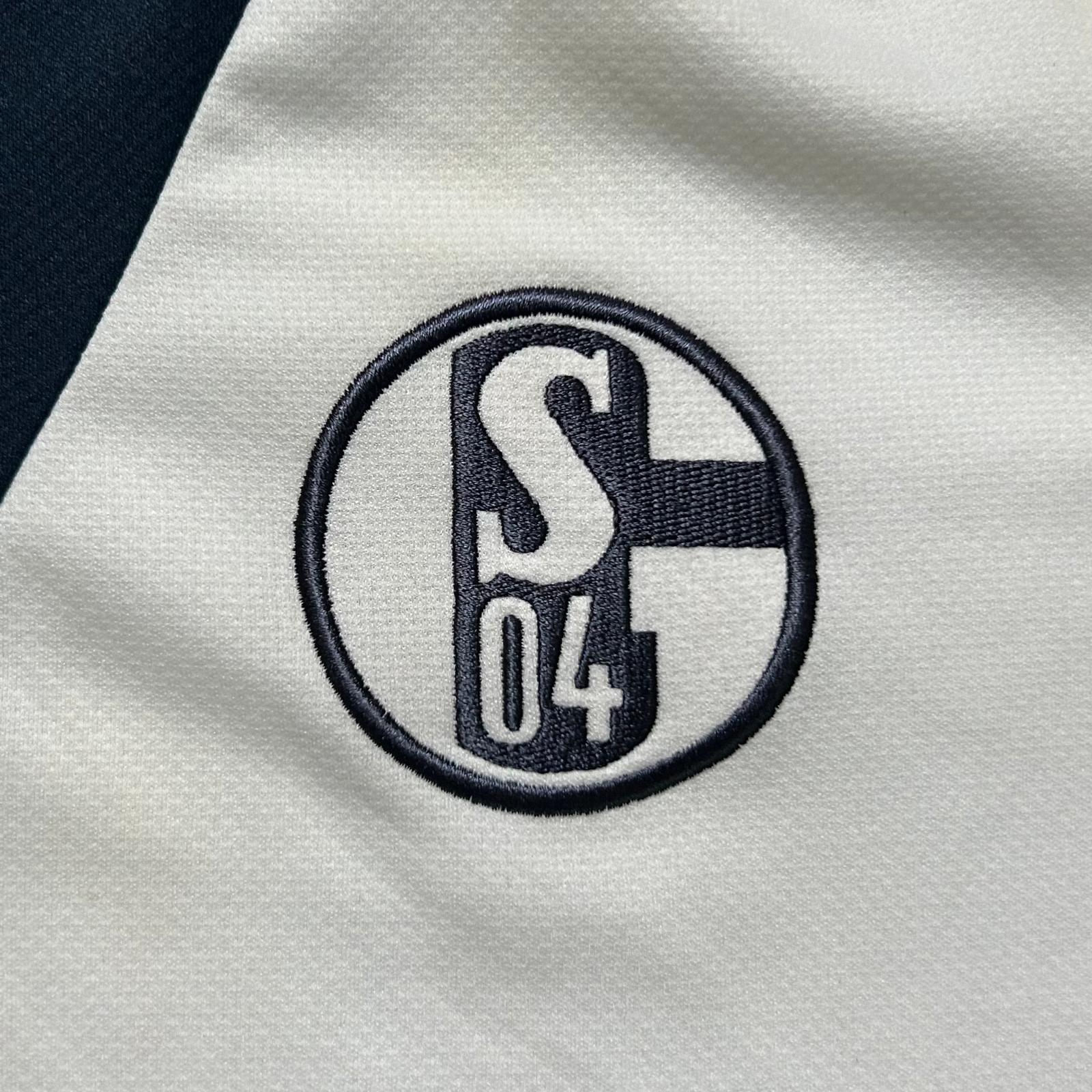 Camiseta de visitante del Schalke 04 utilizada entre 2013 y 2015, diseñada por Adidas. Predominantemente blanca con detalles en negro, esta equipación acompañó al equipo en una destacada tercera posición en la Bundesliga 2013-14, lo que les permitió clasificar a la Champions League. En la temporada 2014-15, el club finalizó en la 6.ª posición, asegurando su presencia en competiciones europeas.