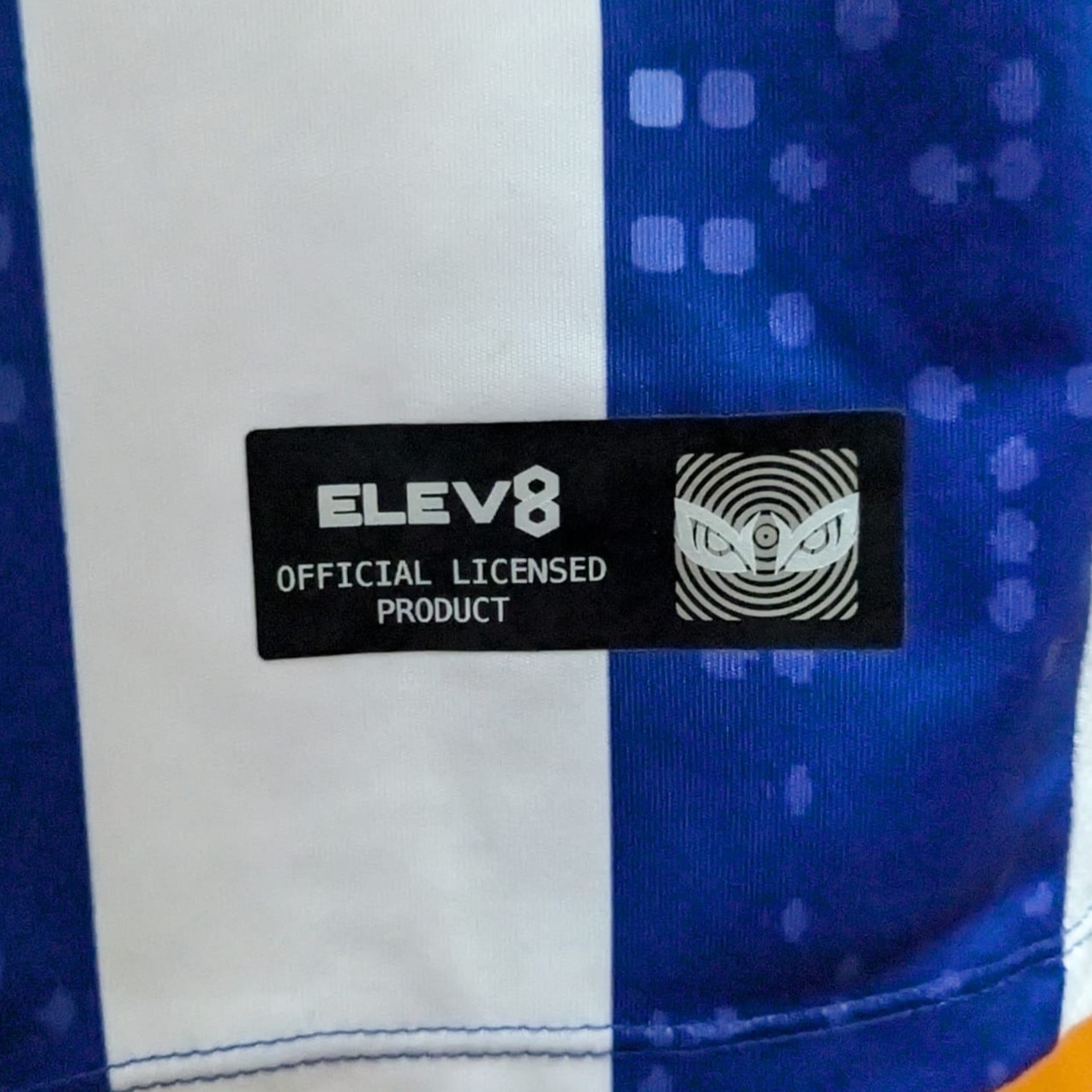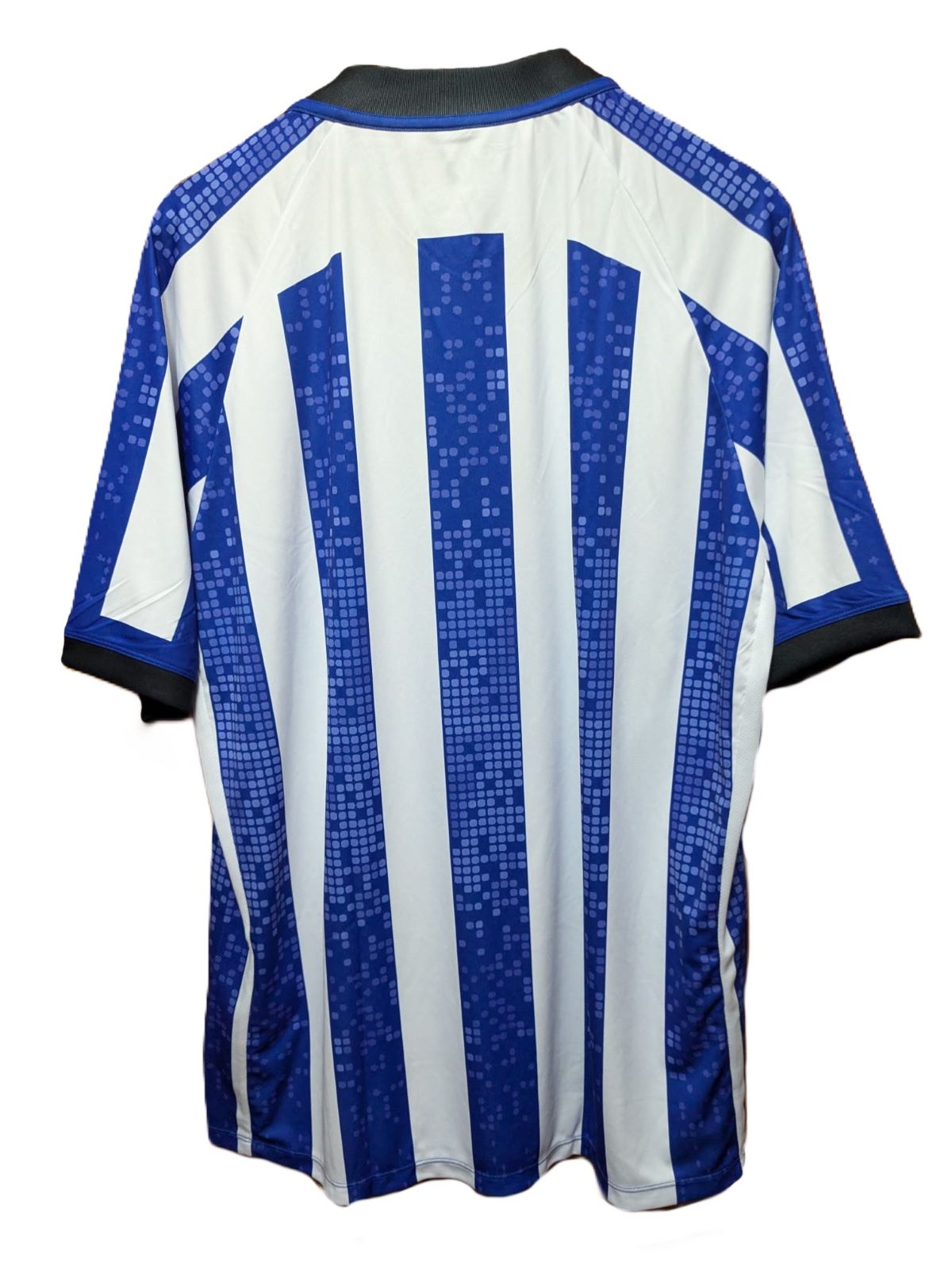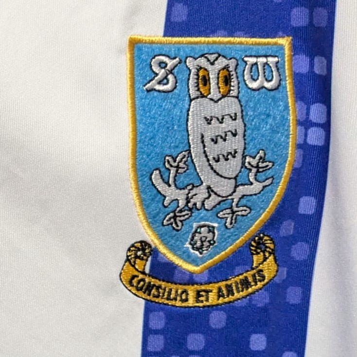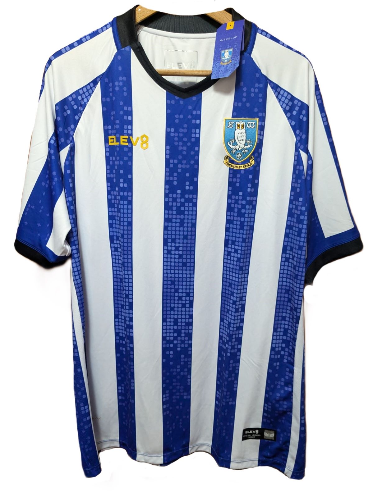 Camiseta local del Sheffield Wednesday para la temporada 2019 – 2020, fabricada por Elev8. Presenta el tradicional diseño a franjas azules y blancas, con un patrón digital pixelado en las franjas azules. El equipo compitió en la EFL Championship, finalizando en la 16ª posición de la liga.