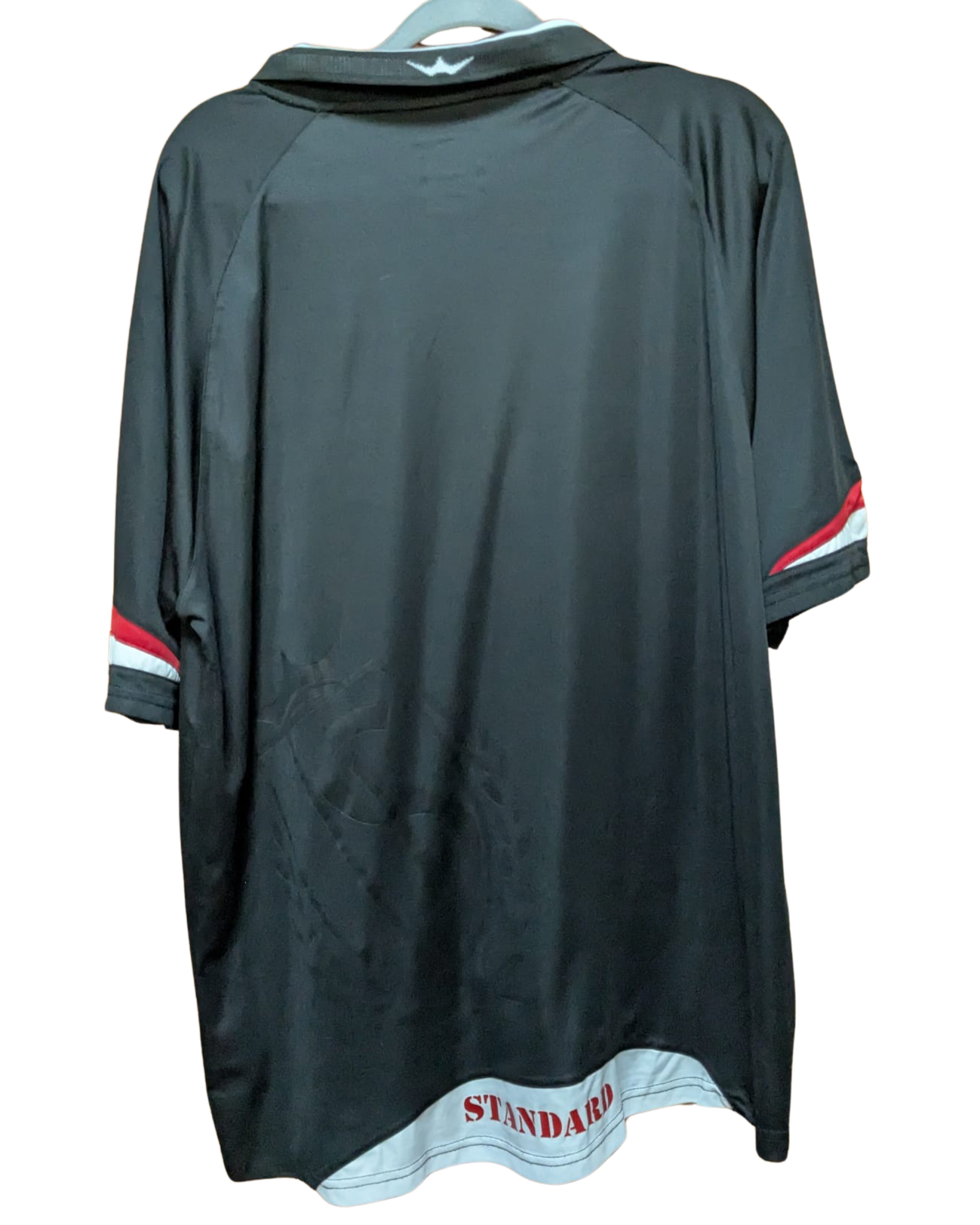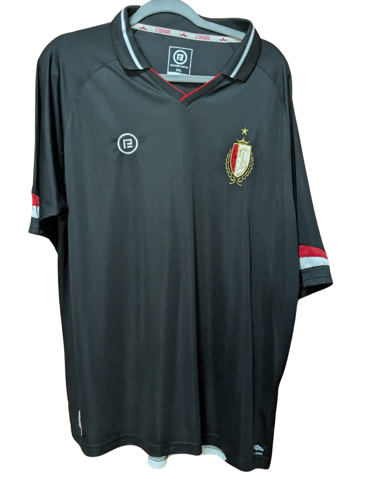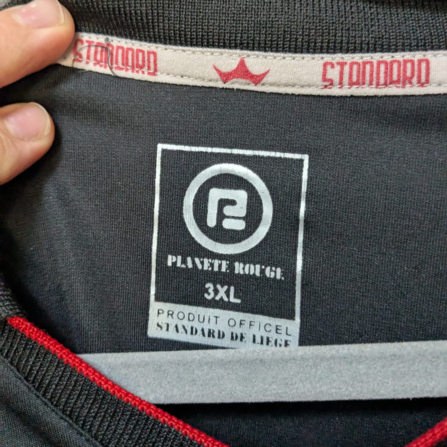 Camiseta visitante del Standard de Lieja para la temporada 2010–2011, fabricada por Planète Rouge, la marca propia del club. De color negro con detalles en rojo y blanco, se utilizó durante la campaña en la que el equipo se proclamó campeón de la Copa de Bélgica y finalizó segundo en los playoffs por el título de liga.
