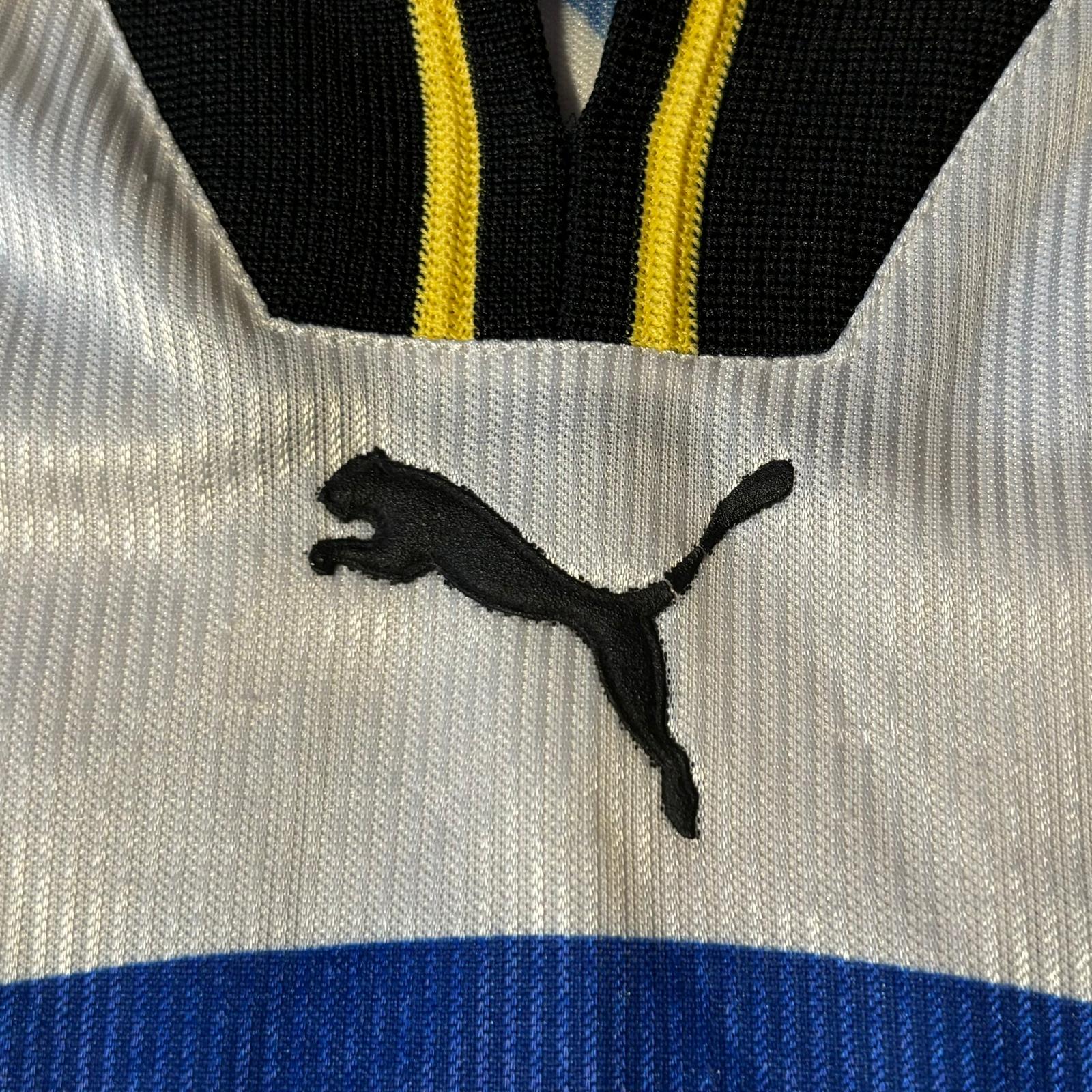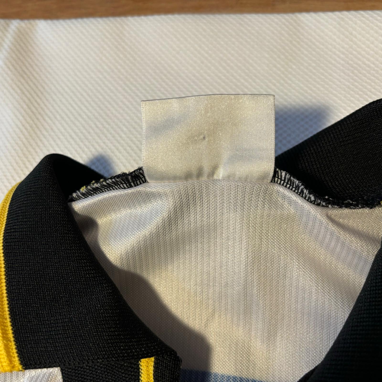 Primera equipación del Sturm Graz en la temporada 1998 – 1999. Un gran año, sin duda, ya que ganaron el triplete en las competiciones locales: Supercopa, Bundesliga y Copa de Austria. Esta temporada jugaron la fase de grupos de la Champions League.