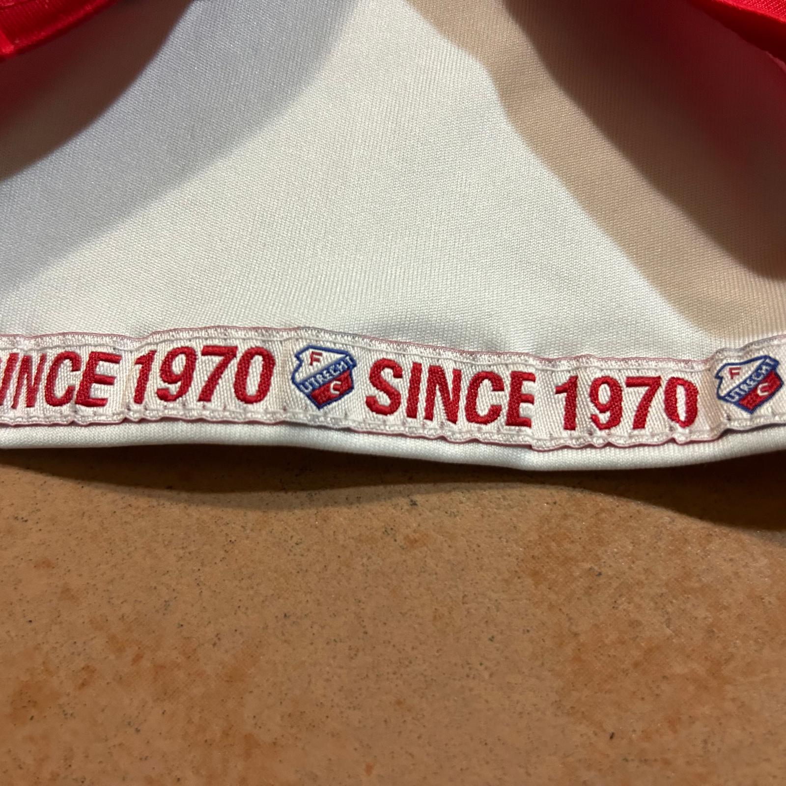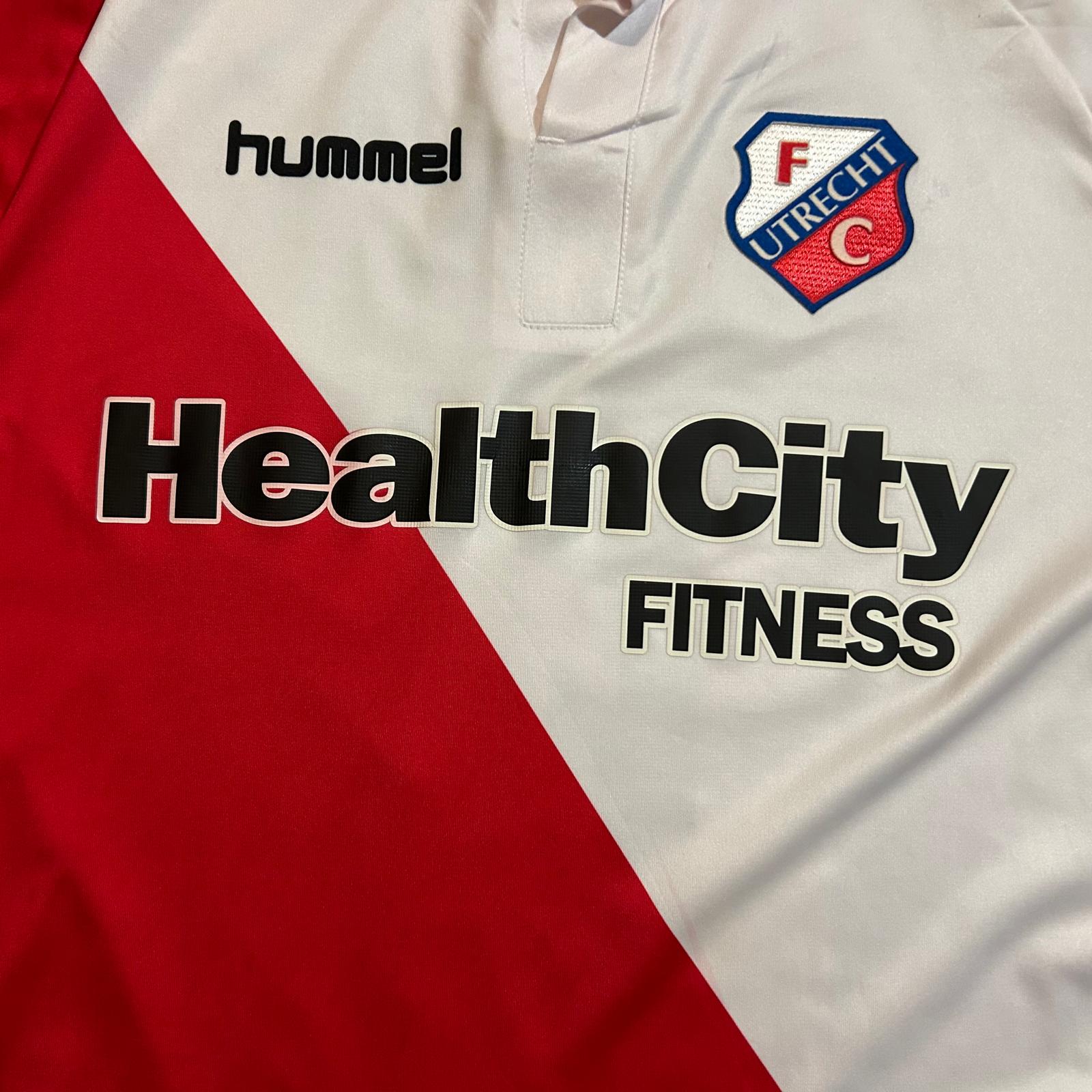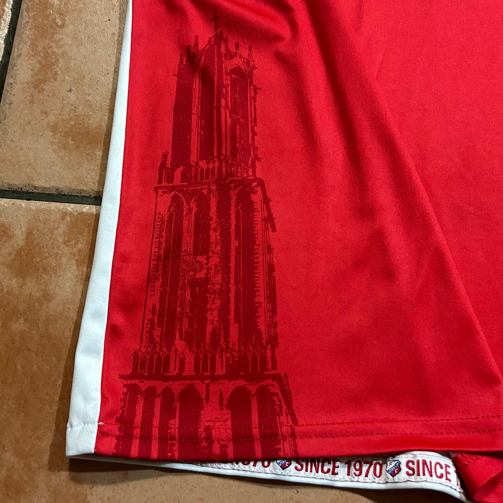 Camiseta local del FC Utrecht para la temporada 2012 – 2013, fabricada por Hummel. Presenta el diseño tradicional en rojo y blanco con una diagonal en el centro. El equipo finalizó en la 5ª posición de la Eredivisie, clasificándose para los playoffs de la Europa League. En copa cayó en segunda ronda ante el Ajax.