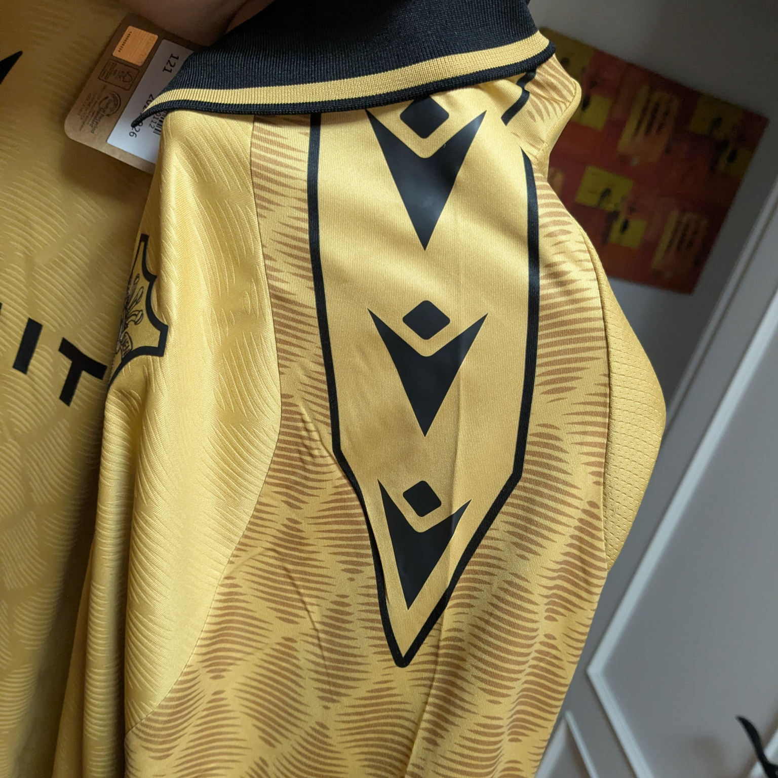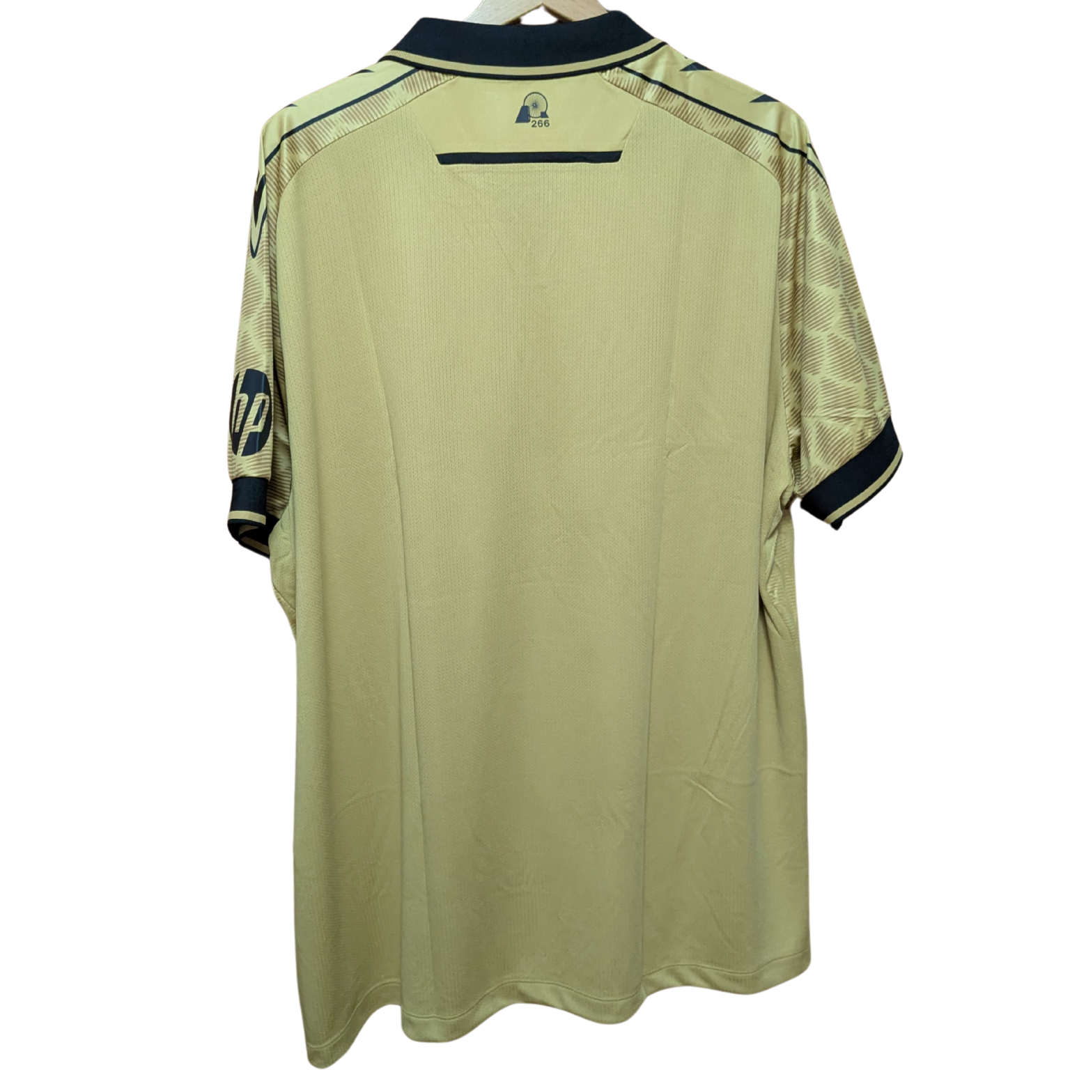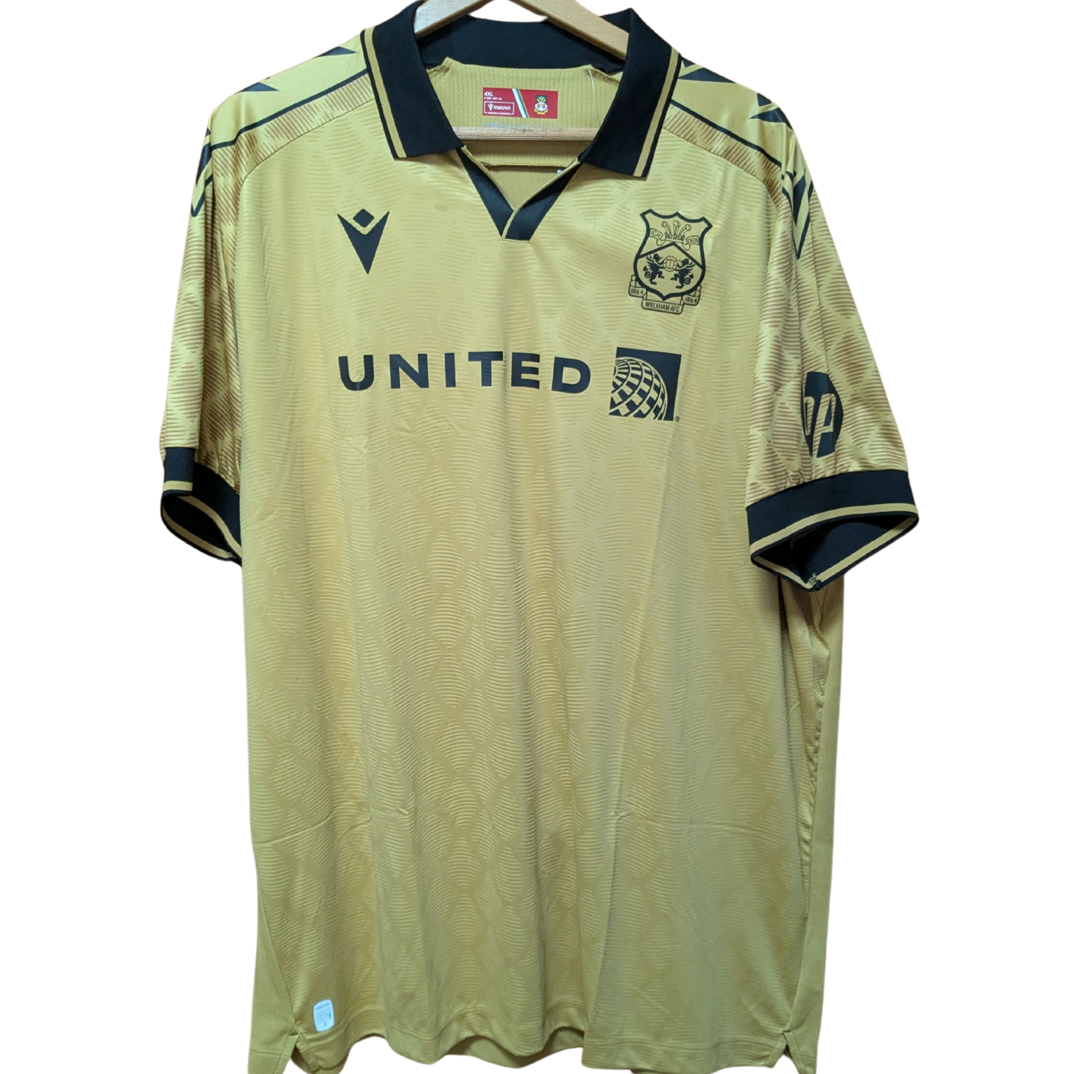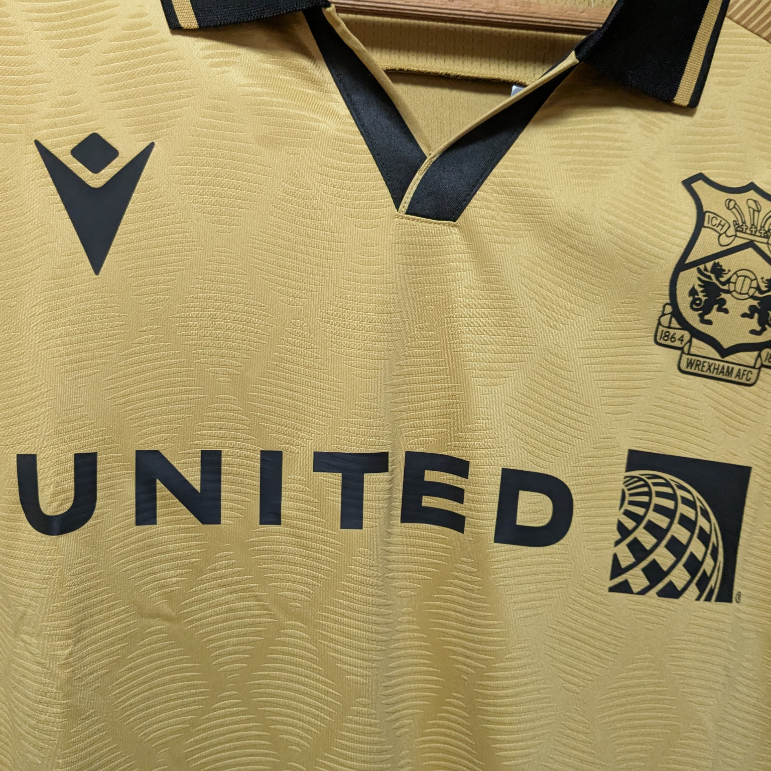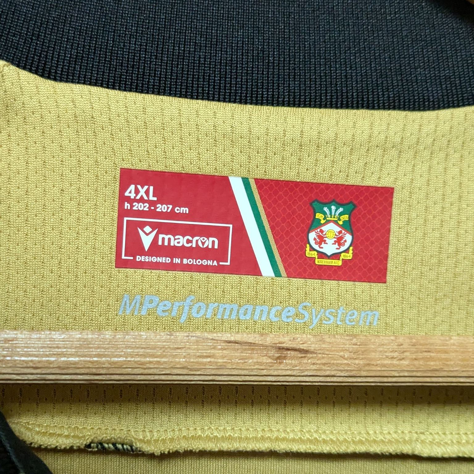 El Wrexham presentó esta tercera equipación para la temporada 2024-2025, diseñada por Macron. Su estética elegante y moderna en tonos dorados con detalles en negro la convierte en una de las camisetas más llamativas del club.